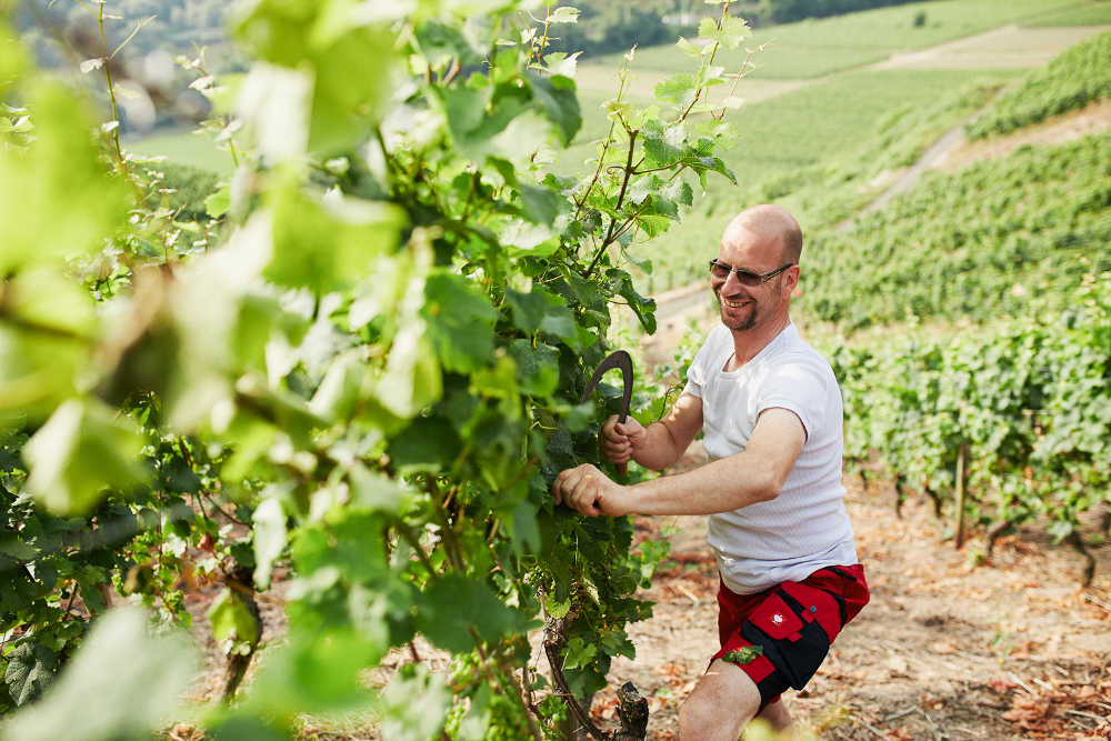 Ein den Weinbergen angepasster Rebschnitt, ein zeitiges Ausbrechen der Kümmertriebe und eine gute Belüftung in der Laubwand sorgen für eine gute Qualität der Trauben.