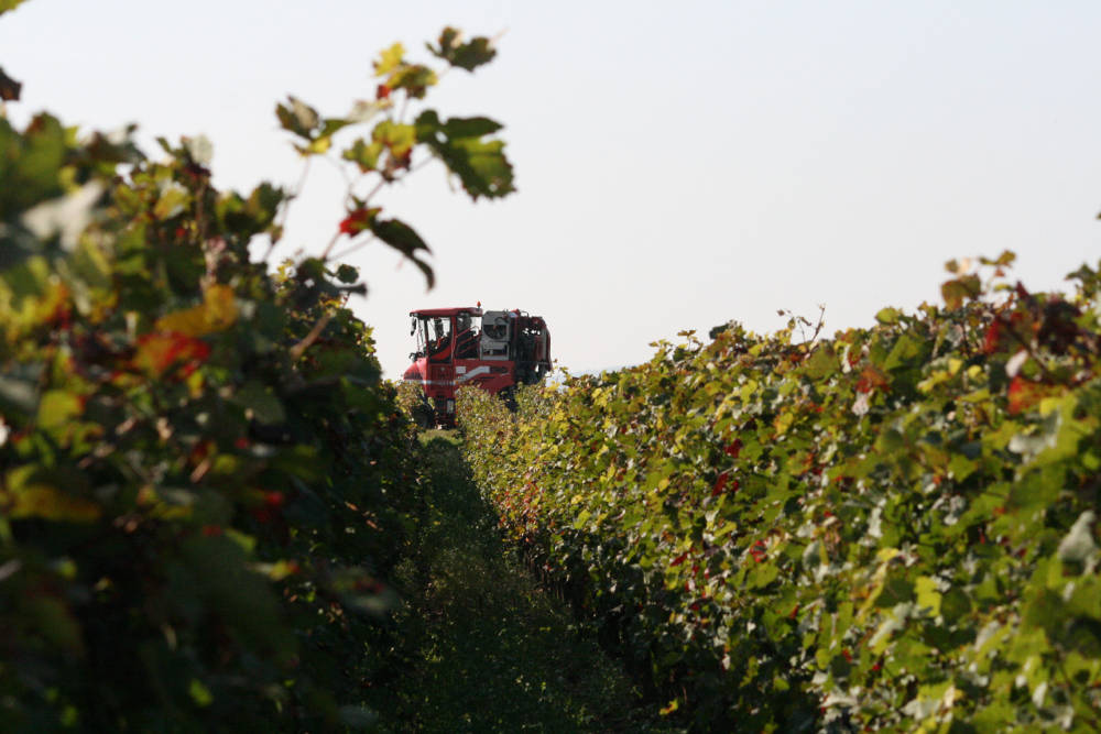 Die Trauben werden zum größten Teil per Vollernter gelesen, somit haben wir die Möglichkeit schneller auf Wetterumschwünge zu reagieren, die letzten Sonnenstrahlen mit einzufangen und überwiegend gesundes Lesegut weiterzuverarbeiten.